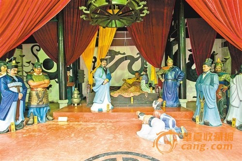 今天,在白帝廟正廳“托孤堂”中,可觀賞到大型彩塑“白帝托孤”。這組彩塑有真人大小的三國歷史人物21尊,重現了劉備向諸葛亮托孤的歷史故事。