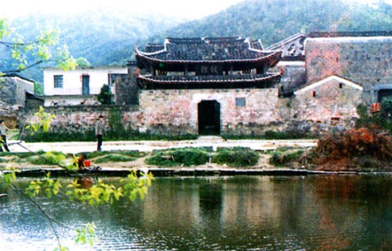 鼓樓後是一棟明建三進兩井古屋。一進是萬年古戲台,戲台兩邊是化妝房及行頭把子房,大天井兩廂是觀戲樓,二進廳是觀戲廳。大天井兩頭雕窗刻柱,四角均是龍獅撐,紅色礎石镂有花紋。自明代以來,歷經滄桑,鼓樓的今昔面貌雖不盡相同,但主體沒有大變動,為縣僅存唯一樓閣,對了解當地宗祠的形制和建築藝術等具有重要的文物價值。