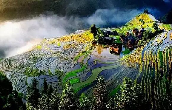 無論春夏秋冬,每天清晨,一層層雲霧從河邊緩緩升起,這些美麗的梯連同梯田邊上的苗鄉吊腳樓全都被籠罩在雲霧中,遠遠望去,吊腳樓若隱若現,讓你在陶醉中生起一種身在幻境的錯覺。