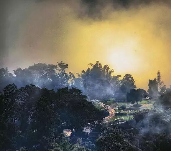 一座座造型別致的白色小樓錯落在濃蔭綠抹之中,遠遠望去,就像美麗的積木砌成。特別當陽光正熾,山頂雲霧缭繞,遠遠眺望恍若世間仙境。