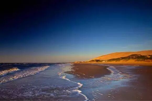 這裡的沙細、灘緩、水清、潮平,這裡以“沙漠與大海的吻痕”而馳名。不僅能看海還有滑沙的地方。未被污染的海水、沙灘和人性。