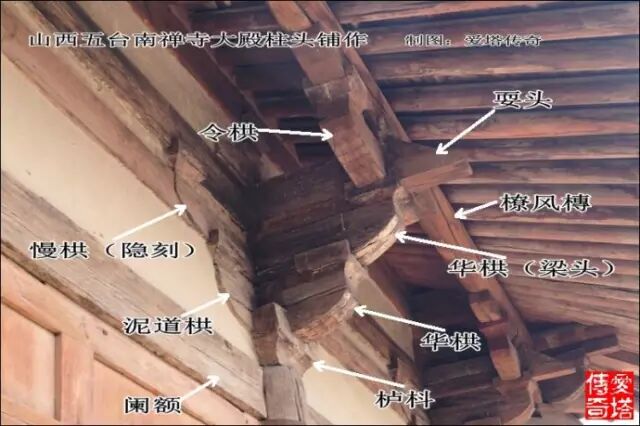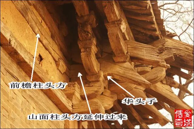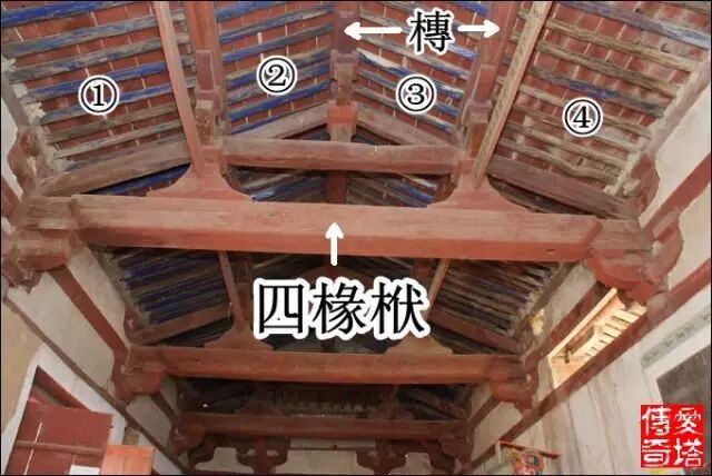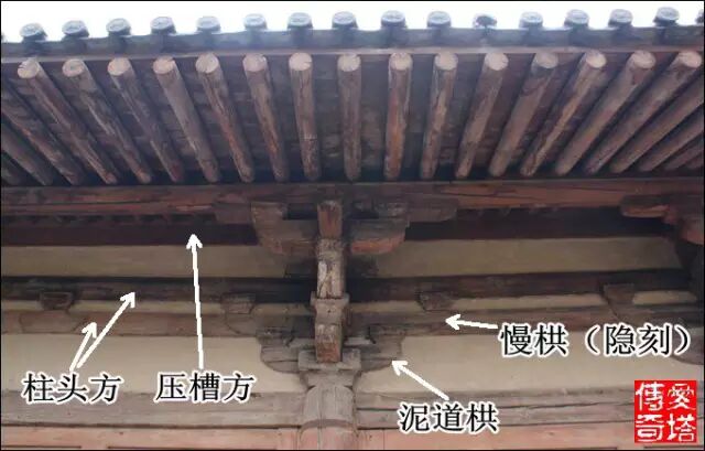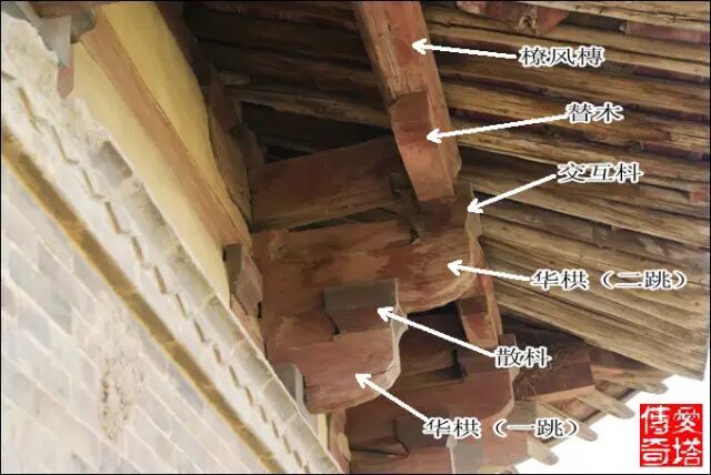 鋪作最外跳上承托的槫稱為橑風槫,也是整個屋架結構中最下面的槫,這一位置也有不用槫而用方的,稱為橑檐方。山西絕大多數早期大木作使用橑風槫,我只見過幾處應用橑檐方的實例