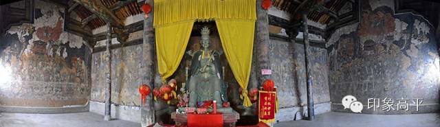 炎帝中廟位於高平市神農鎮中廟村,是全國為數不多的祭祀炎帝的古廟之一,具有重要的文物價值,屬國家重點文物保護單位。中廟內最主要的建築是無梁殿,屬於元代遺構。面闊三間,進深四椽,單檐歇山頂,周檐施用粗大的額枋,柱為木質。殿內無梁架,只有柱枋、斗栱,獨具特色,這就是無梁殿得名的原因。