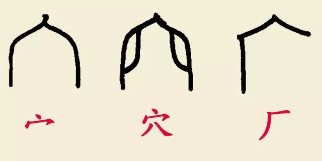 除了字形,漢字的結構常常也能體現出建築的種類、功能,甚至可以看出古人的居住文化。寶蓋頭「宀」意思是穴,人類的居住就是從洞穴發展而來。所以從「宀」部的許多字都於建築居住有關,如穹、家、窗等。