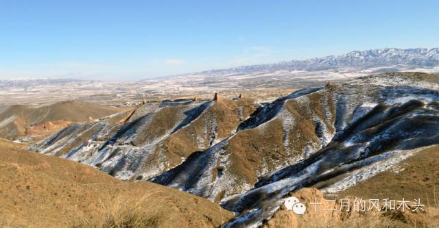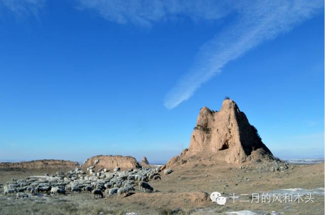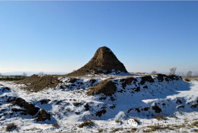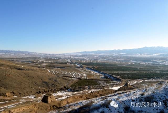 站在宏賜堡的最高點,俯瞰周邊,東接鎮川堡十九墩,綿延數公裡,遠眺可見遙遠的城市上空籠罩的灰煙,也能望到天邊藍白的交接點,高低起伏的山川與高低破敗的墩台相映,在陽光的撫慰下,靜靜地存在著。黃色的土城牆,黃色的墩台,黃色的土地和山川,還有枯黃的草木,和背陰處厚厚的白雪。銀白的高山與深藍的低窪交相輝映,瓦藍的天空下,歷史在這一刻靜止。耳邊仿佛蕩起厮殺與馬鳴聲,眼前是金戈鐵馬,塵土飛揚。