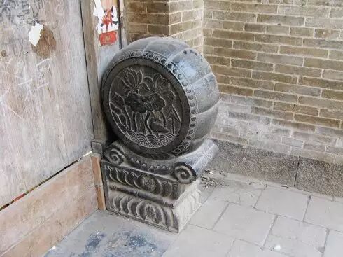 蓮雕刻精細的花座青石鼓