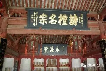 這幢建築最早建於宋代,後來經過多次重建,至今依然顯得古樸雅致,雄偉壯麗。祠堂飛檐高挑,是二層三進的磚木結構,高大的斗拱依然有著當年的氣勢,但是,據說這裡曾有著精美的雕刻梁托,但都在動亂的年代中被破壞掉,想起來確實可惜。只有在中堂的牆壁兩側,寫有“忠、信、笃、敬”四個大字,每個大字都有兩個人之高,那種氣勢足以令人震撼。在祠堂裡,每根柱子上都寫著蘊意深遠的對聯,深濃的文化蘊味從中流露出來。