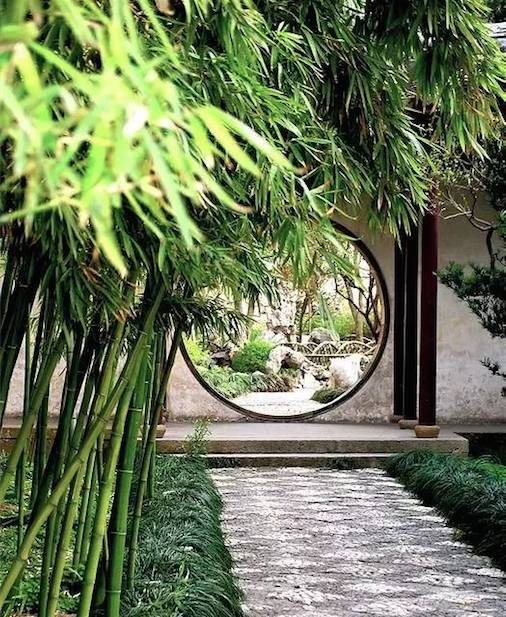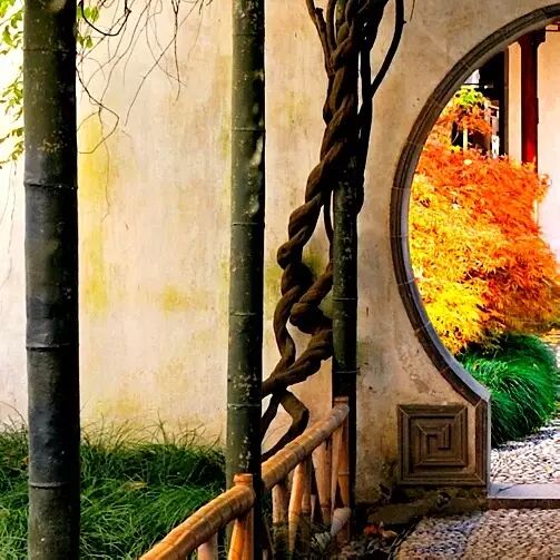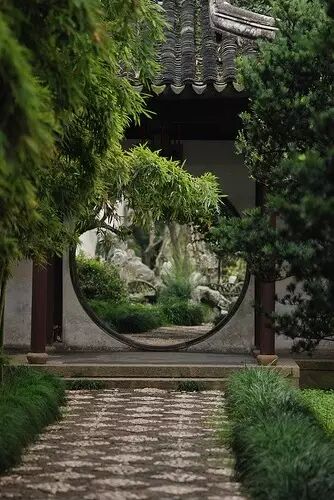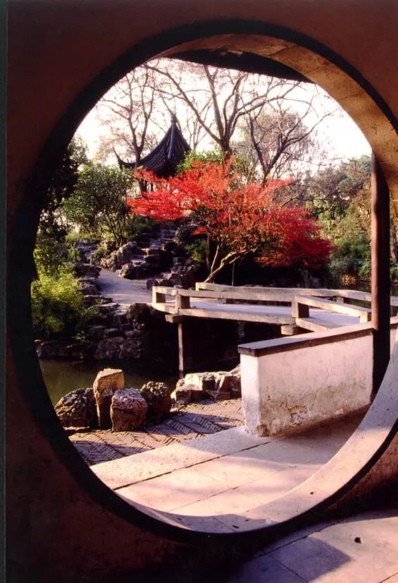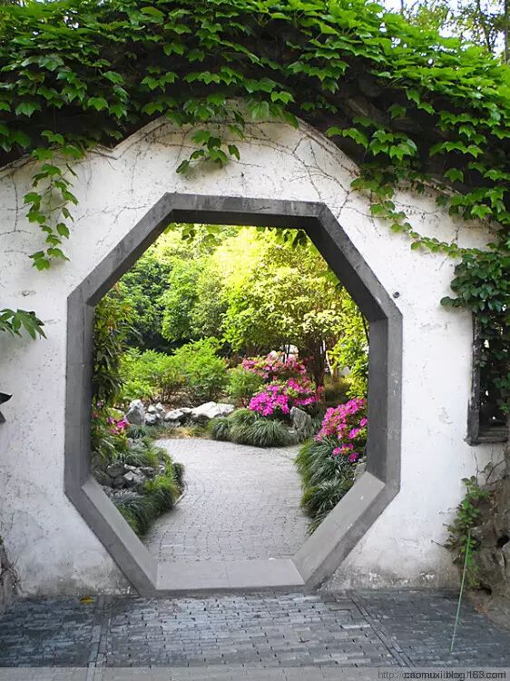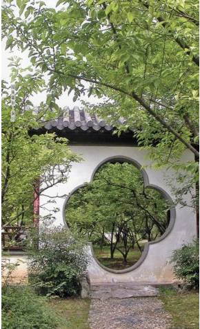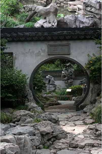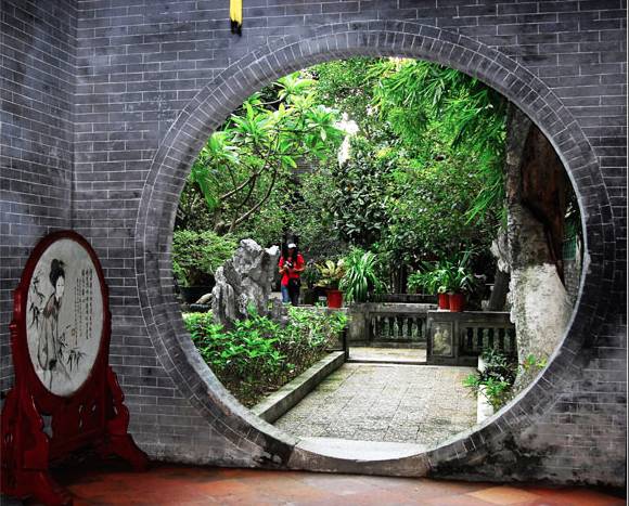 洞門在中國園林空間處理中有非常重要的作用。可以通過門窗洞口形成空間滲透及空間的流動,以達到園中有景、景中有景、移步換景的作用,同時還是創造庭院框景的一個重要手段。