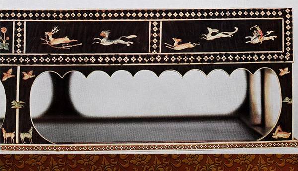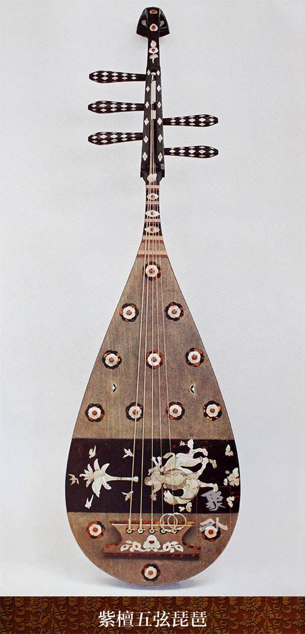 從正倉院的寶物可以清晰看出唐代文化對日本文化的深遠影響。如正倉院中的螺钿紫檀五弦琵琶,琵琶紋飾中繪有一個騎在駱駝上的樂手,周圍是一些沙漠植物。有人認為,此畫展示了絲路或中國西北風光。