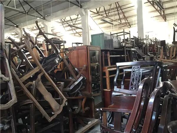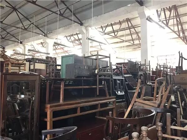 89年她一個人離開美國,只身到上海,從五十多歲開始到各地收藏古典家具,一個人慢慢做起來,最鼎盛的時期有100多個木匠修復師。她曾經被諸如探索頻道的外媒爭相報道,卻鮮少出現在國內媒體上。像下面這樣的古家具大倉庫就有兩個。