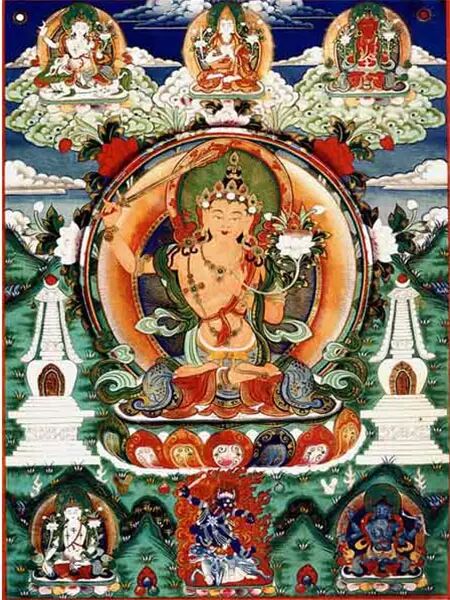 綠度母為觀世音菩薩的化身。度母,梵名Tara,全稱聖救度佛母,我國古代稱多羅菩薩、多羅觀音,度母有許多不同的化現,包括有二十一度母、五百度母等等,皆為觀世音菩薩之化身,而綠度母為所有度母之主尊,總攝其余二十尊化身之所有功德。