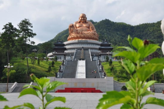 雪窦山地處四明山東緣,這裡山巒靈秀,巖壑雄奇,瀑布絢麗,林泉幽深,氣候宜人,素有“四明第一山”之譽。來到雪窦寺,感受到的是濃濃的彌勒文化。相傳被奉為彌勒佛化身的布袋和尚出生於此,修成正果後將這裡作為他的道場。雪窦寺歷史悠久,早在明代就被稱為“天下禅宗十剎”之一,氣勢恢弘,莊嚴靜穆,寺內建築構思精巧,處處體現出佛教文化的博大精深。一尊以布袋和尚為原型、高達38米的銅制露天彌勒大佛端坐在乳峰之腹,笑容可掬地接受四方信眾頂禮膜拜。
