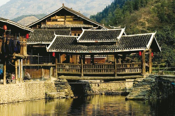 肇興舊稱“肇洞”,寨內吊腳樓鱗次栉比,戲樓、歌坪點綴其間,有全國最大的侗寨。最出名的是五座鼓樓、五個戲台和五座風雨橋。肇興侗寨有“千家肇洞”和“侗鄉第一寨”之美譽。肇興侗寨四面環山,寨子建於山中盆地,一條小河穿寨而過。寨中房屋為干欄式吊腳樓,鱗次栉比,錯落有致,全部用杉木建造,硬山頂覆小青瓦,古樸實用。