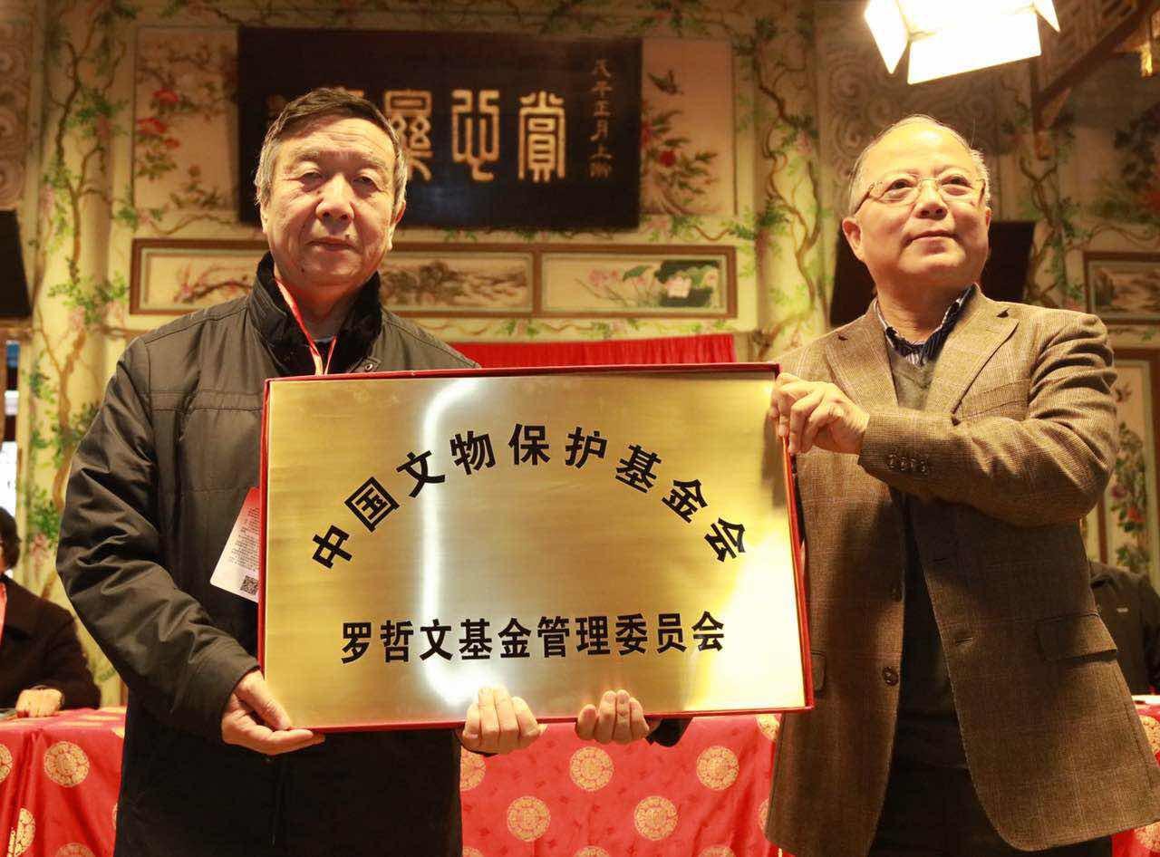 成立大會上,勵小捷理事長向中國文物保護基金會羅哲文基金管理委員會正式授牌成立,鄭欣淼主任接受牌匾。