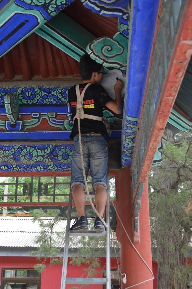 說起古建築測繪,天大的師生們提到最多的就是爬房上梁。所謂爬房上梁,就是借助梯子、繩子等工具到高處近距離觀察房子的結構,對梁柱、斗栱等部位進行量取和描繪。這是古建築測繪中非常關鍵的一步,也是大家印象最深的部分。