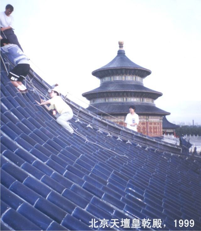 在測繪現場,一頭白發的王其亨總是格外引人注目。2013年,王其亨帶著學生去故宮的大高玄殿進行測繪。雖然年近七十,綁梯子這些事情他仍舊親力親為。這是天大多年來一直堅持的傳統。搭梯子、捆安全繩、鋪氣墊床,每一個環節帶隊老師都要親自操作。當梯子搭好以後,老師要第一個爬上梯子,確認安全以後才能讓學生爬上去進行測繪。