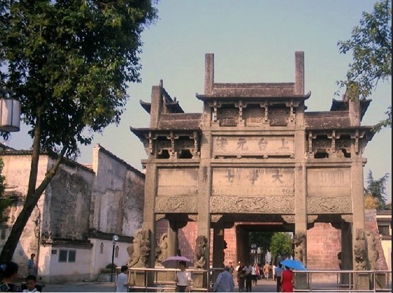 許國石坊建於明朝萬歷年十二年(公元1584年)。坊主許國是歙縣縣城人,嘉靖乙丑(公元1565年)的進士,是嘉靖、隆慶、萬歷三朝重臣。萬歷十一年,以禮部尚書兼東閣大學士成為內閣成員,後又加封太子太保,授文淵閣大學士。萬歷十二年九月,因平定雲南邊境叛亂有功,又晉升為少保,封武英殿大學士。坊上“少保兼太子太保禮部尚書武英殿大學士許國”是許國的的全部頭銜。(“少保”是太保的副級,屬皇帝的高級顧問,“太子太保”是輔導太子的老師,“禮部尚書”相當於現在教育部長和外長部長,“武英殿”是皇宮內許國辦公的地方,“大學士”是內閣成員的稱號。)雲南邊亂平息一月之後,萬歷重賞群臣,許國被贊為“協忠運籌、芪著勞績”受到了“加恩眷酬”,上沐皇恩,回到老家歙縣,催動府縣,興師動眾,鸠集工匠,建造了這座千古留名的大石坊。關於這八腳牌樓還有一段饒有興味的傳說。據說一般臣民只能建四腳牌樓,否則就是犯上。而當時徽州達官顯貴、鄉紳巨賈眾多,四腳牌樓林立。許國是地方的驕傲,如果只是造一座四腳牌坊,無法體現他的官重威顯。怎樣才能建造一座與眾不同的牌坊呢?許國靈機一動,想了個“先斬後奏”的點子。許國建這座牌坊前後共拖了七八個月才回朝復命。由於超假,許國跪在丹上久默無聲,皇上迷惑,責備說:“朕准卿四月之假回鄉造坊,為何延為八月?建坊這麼久,不是說是四腳,就是八腳也早就造好了”。許國聽了,頓時口呼萬歲,奏稱“謝皇上恩准,臣建的正是八腳牌樓。”皇帝聽了哭笑不得,皇帝開金口不得反悔。就這樣,許國所建的石坊也就“合法化”了。這當然是傳說,不過據專家考證,全國就只有這麼一座八腳石坊,恐怕也算是“下不為例了”了。