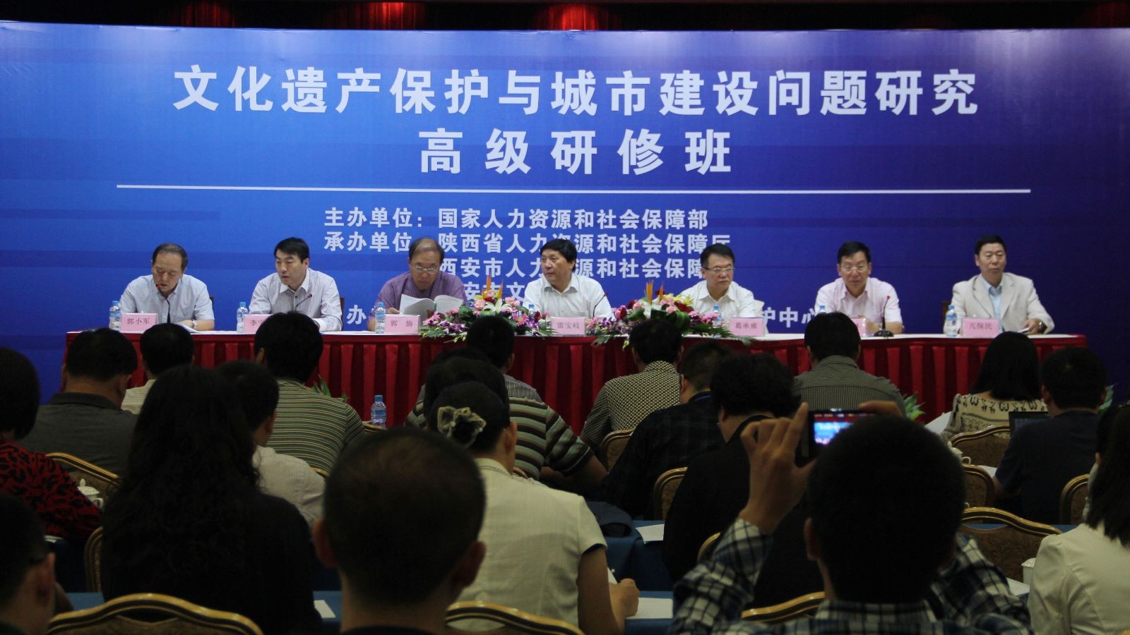 2012年9月11日至15日,由國家人力資源和社會保障部主辦,陝西省人力資源和社會保障廳、西安市人力資源和社會保障局、西安市文物局承辦,國際古跡遺址理事會西安國際保護中心協辦的“文化遺產保護與城市建設問題”專題研修班在西安召開,這次培訓班采取專家授課、古跡遺址現場研修、學員研討、論文交流和考察調研相結合等方式進行。來自全國文化遺產保護與城市建設方面的高級專業技術人才或高級管理人員50人參加培訓。