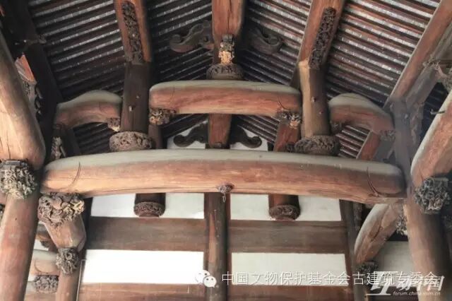 木構梁架是漢族古建築發展的主流,梁架最主要的作用是承重。在中國北方地區的漢族木結構建築中,多做平直的梁,而南方的做法則將梁稍加彎曲,形如月亮,故稱之為月梁。加之南方天氣炎熱,殿堂基本上都做“徹上明造”而不做天棚,這樣一來月梁的形象暴露於外,當人們進入殿堂時,全部梁架構造一目了然。