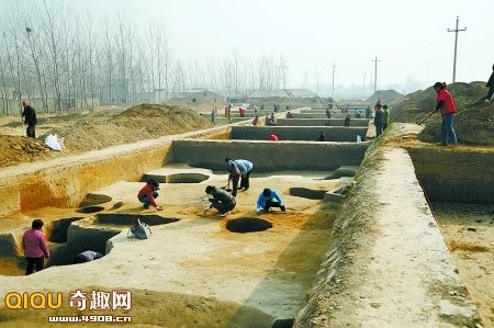 據介紹,在距兩個城址城牆東北角約300米處,又發現有城牆,城牆外為一條人工開鑿的壕溝,應該為外廓城牆和護城河。護城河長約1100米,東接黃溝水,西連黃水河,形成一個封閉的城圈,夏、商二城均在這個大城圈之內。