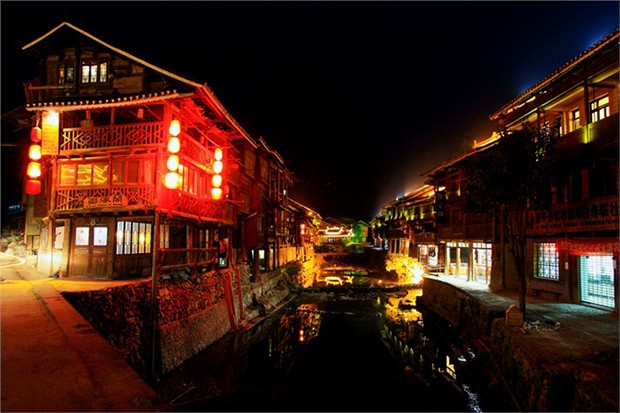 走出門外已經是夜色彌漫,一片彩燈照耀,將鼓樓和花轎裝扮得霓虹燦爛。可是這樣的裝飾在城市中早已司空見慣,在我的眼中,多了這些炫彩時尚的包裝手段,並沒有升華侗寨本身純美的自然氣質,反而會將其推向媚俗的情調模式。如果讓我選擇,我還是喜歡那個擺在侗家飯桌上的,飄蕩在侗族大歌裡的純樸無華的肇興。