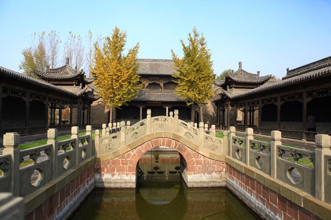 常家莊園之恢弘,不是一般人想象得到的。跨過二丈五尺寬的拱型石橋,穿過七丈二尺高的堡門,展現在人們面前的是一條長達650米長的清代街道。長街的南北宅院緊靠,無一條橫向通道,形成了“臨街門戶依次開,堡門關閉如一堂”的格局。主要建築和景觀為“一山一閣、兩軒、四園、五院、六水、九堂、八帖、十三亭、二十五廊、二十七宅院”。