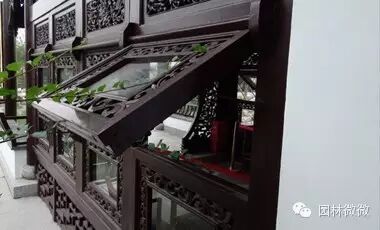它與半窗頗相似,但是窗下部並不是用磚頭所砌成的半牆,而是采用木頭鉤欄托頂,為阻擋風雨或通風清潔,鉤欄外一般還安裝有雨搭板,鉤欄與雨搭板均可拆卸。例如蘇州的留園就有“西樓”、“揖峰軒”、“林泉耆實之館” 等數處,它們簡樸與精雕不一,各俱特色。