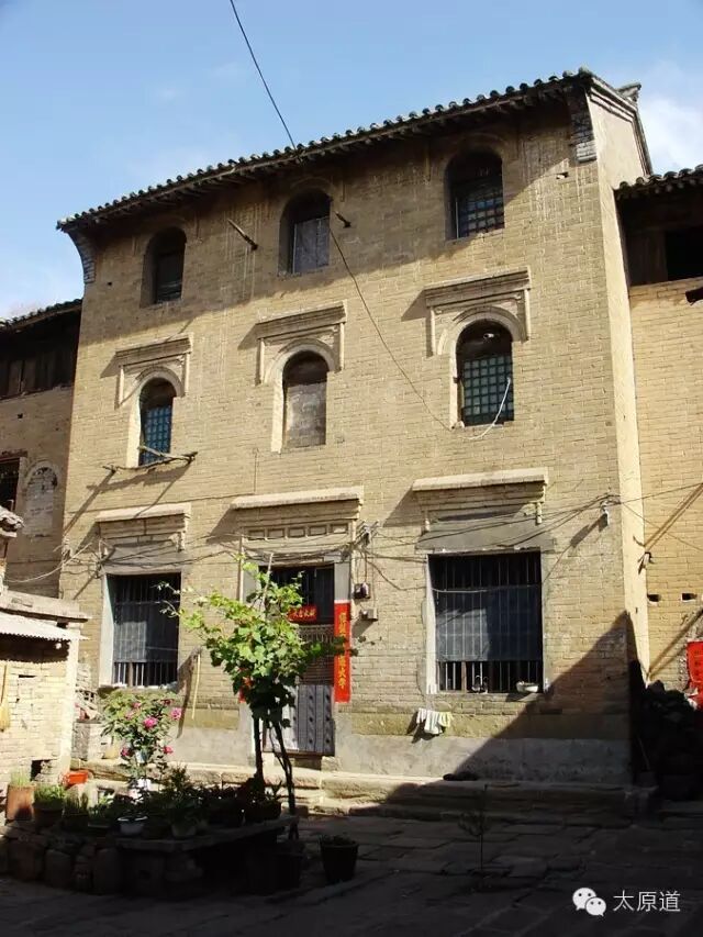 從建築形式與建築風格上說,湘峪古城的民居建築與其它沁河古村落相似,但其正房更為高大、高層建築更為集中、氣勢更為恢宏,同時,它還擁有自己的特色,那就是中西合壁的建築裝飾形式。湘峪民居的窗戶多采用拱券式窗孔,窗孔外牆飾以“眉檐垂柱”式磚雕,這是一種已經漢民族化但仍然帶有濃郁西式風格的裝飾形式。