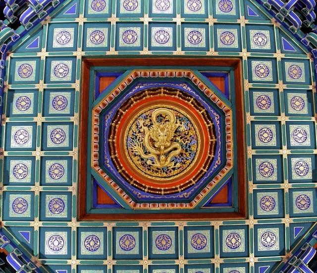 當人們被紫禁城中數不勝數的宏偉宮殿、雕欄畫柱所吸引時,可能忽略了凝聚在屋頂上的華美符號——藻井。藻井,這個在古人看來具有一種“從人間通向天庭”的象征意義的建築裝飾一直被專業人士所關注,它所蘊涵的深厚的中國傳統思想,更為中國古代建築增添了無窮的意味。