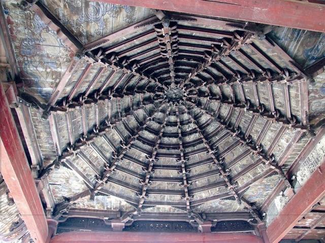 因此,藻井就有了象征“天”的意味,就像西方教堂建築中的穹窿頂代表上蒼一樣,中國建築內的藻井也是就表天體的縮影。