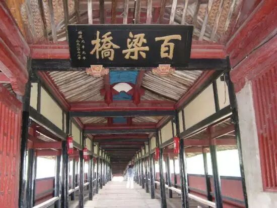 該橋全長77.4米,寬6.18米,六墩七孔,橋上建有瓦屋橋廊。因橋梁有124根大杉木架設而成,故曰“百梁橋”。